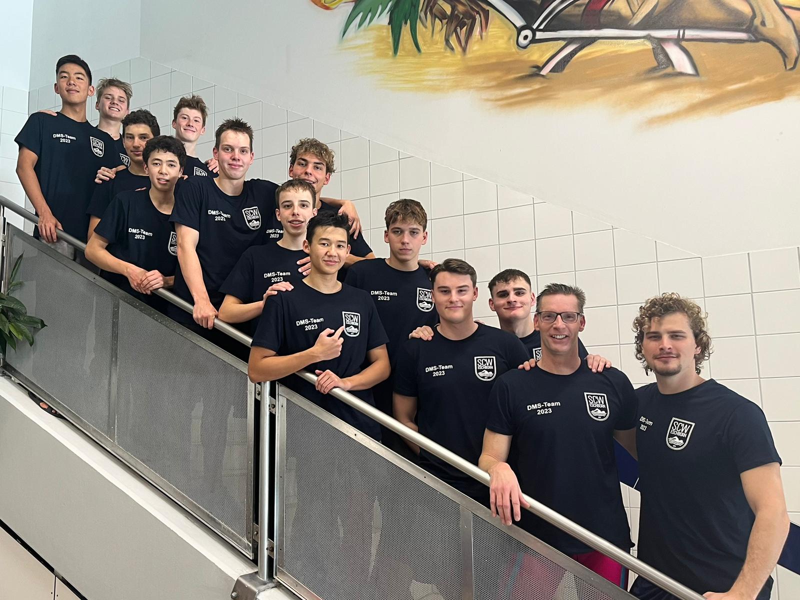 Die Herren starteten in der Hessischen Oberliga, der mehrgleisigen (über mehrere Bundesländer verteilten) dritten Schwimmliga. Das Team wurde von Julius Montag, Max Pohl, Luis Stritter, Lucas Pohl und Frank Gruner angeführt. Frank konnte im Wettbewerb zweimal schneller als der gültige Deutsche Mastersaltersklassenrekord schwimmen und war im Feld der älteste Teilnehmer und dennoch bei seinen Rennen vorne dabei. Aaron Bröske, Valentin Groß, Ruslan Nurumbetov, Manato Missel, Moritz Becker, Youxun Liu, David Heymann und Henri Heinke komplettierten das von „Schwimmertrainer“ betreute Team von Max Pohl, der kurzfristig auf den erfahrenden Jannik Fraatz krankheitsbedingt verzichten musste. Die Männer konnten sich im Hallenbad Höchst durch Bestleistungen und Teamgeist mit dem 3. Platz am Ende einen Pokal sichern und peilen für die nächsten Deutschen Mannschaftsmeisterschaften nun die Rückkehr in die 2. Bundesliga an. So könnte der SCWE im großen Jubiläumsjahr 2024, wo der Verein sein 50jähriges bestehen feiert, mit beiden Teams vereint in der 2. Bundesliga schwimmen.
