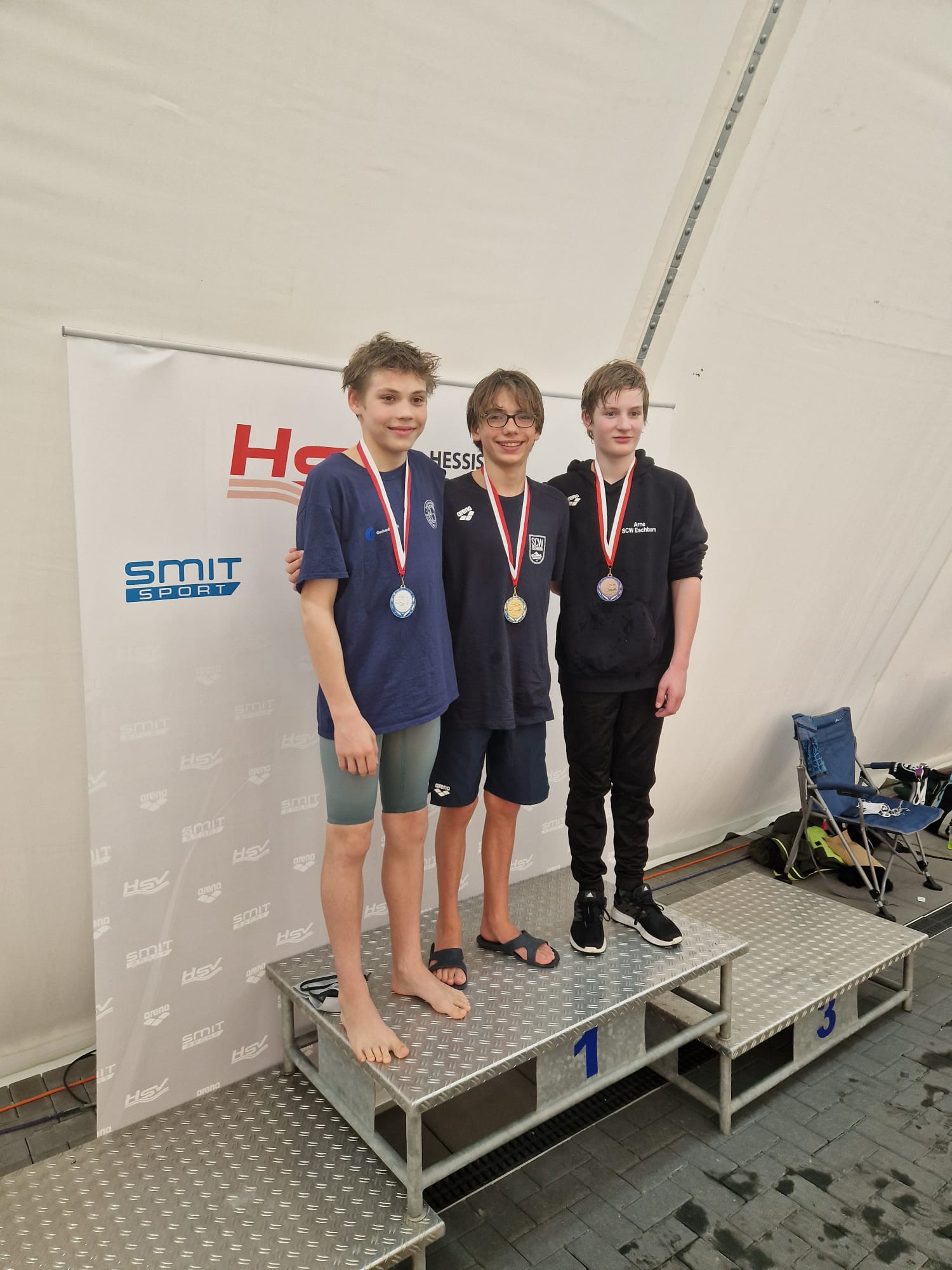 Für einen historischen Moment sorgten die 2010er SCWE Jungs. Sie holten alle drei Podestplätze. Tom siegte vor Taku und Alex Wang. Man sieht anhand des Ergebnisses wie vielfältig die Eschborner ausgebildet sind und im Prinzip jede der vier Schwimmlage perfekt beherrschen und dies dann auch im Wettkampf umsetzen können. Adrian Klose verpasste den Titel knapp und schlug als zweiter an.