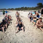 Heute morgen durfte die LG3 ausschlafen, doch ein „in Panik“ geratener Hahn begann um 6 Uhr zu krähen! Die LG1 musste wie immer um 7 Uhr ins Frühtraining. Wir standen ganz entspannt auf und haben das Frühstück genossen. Nach dem Frühstück mussten wir uns für das Landtraining um 10 Uhr fertig machen, das heute etwas lockerer war, da allen die Kraft gefehlt hat. Dann ruhte sich die LG3 ein wenig aus, um das Nachmittagstraining zu überleben. Als alle nach dem Mittagessen satt waren musste wir uns mit Sonnencreme eincremen, da die Sonne heute sehr warm war. Die LG1 „lachte“ uns aus, da sie am Nachmittag frei hatten, wir aber ins Training mussten. Nach dem Training sind alle aus der LG3 an den Strand gegangen und/ oder haben ein Eis gegessen. Manche gingen ins eiskalte Meerwasser, während die anderen sich gesonnt haben. Dann buddelten ein paar Leute Janis im Sand ein, so dass er wie ein Meermann aussah. Janis hatte nach kurzer Zeit aber keine Lust mehr, da es ihn an jeder Stelle gejuckt hat. Und wir meinen wirklich an jeder Stelle! 😀 Danach gingen alle hungrig zum Abendessen und wir schliefen in null Komma nichts ein.